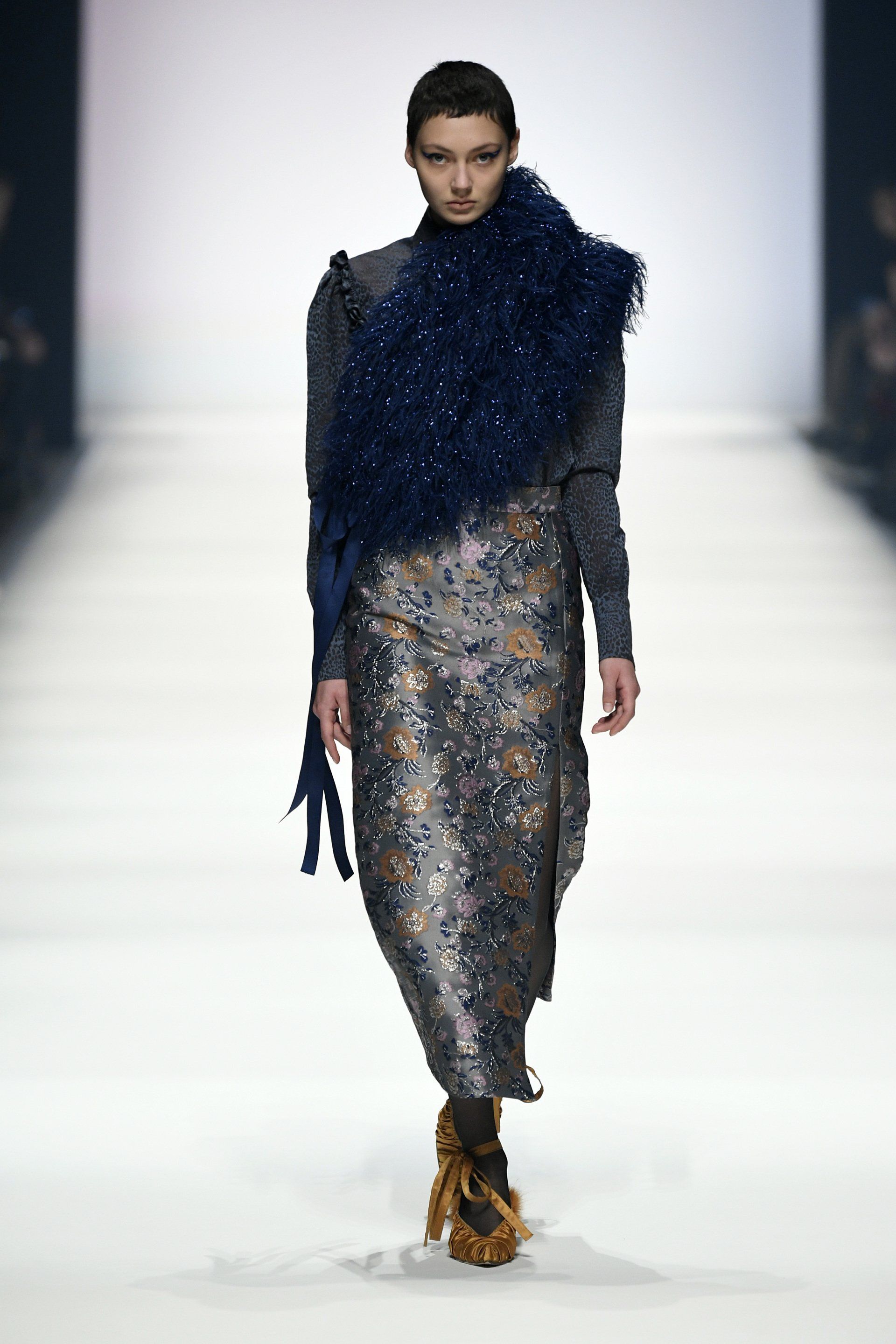 The prêt-à-couture collection "Faded Blossom" focuses on the fall and fading of fashion icon Edith Bouvier Beale. She is also a symbol for the attempt to force people out of their existing habitats.